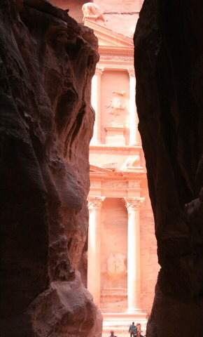 These are photos that Steve took as they progressed through the Siq into Petra. The Siq is a grand caravan entrance into Petra. It is a canyon and the walls are lined with water channels to carry drinking the water to the city. The Nabataeans who lived here were experts in hydraulic engineering. |