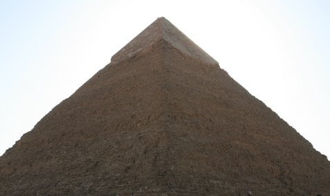 The Great Pyramid of Khufu, also known as Cheops, is one of the largest structures built. It is estimated that 2.3 million blocks averaging 2.4 tons a piece were used in building the pyramid. The pyramid sits on 13.5 acres of land and stands 480 feet. It is estimated that it took 100,00 men over 25 years to build this pyramid. Source: www.historylink101.net